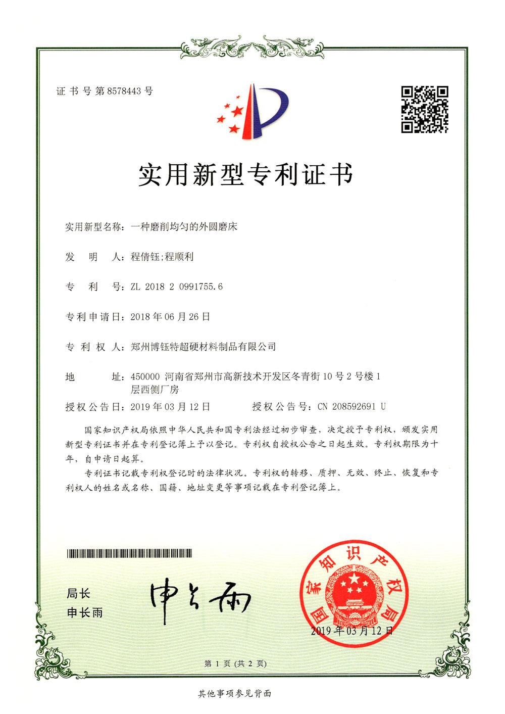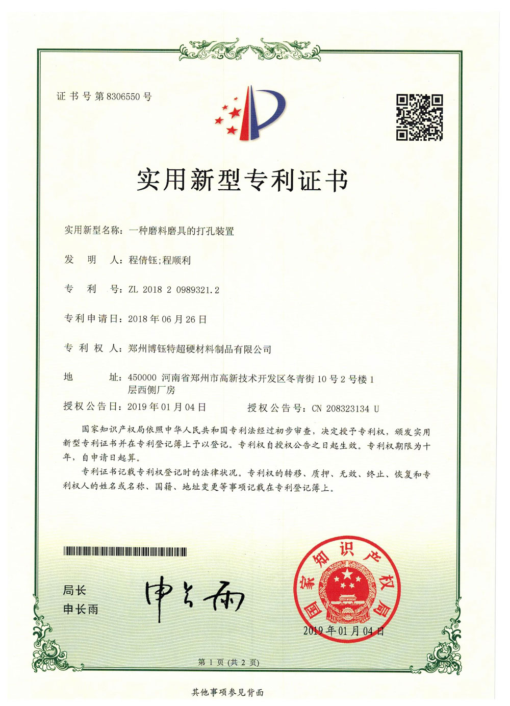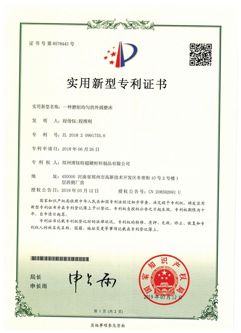博爾德集團(tuán)旗下專利證書(shū)展示
