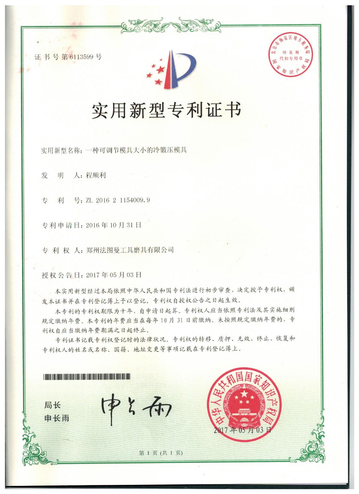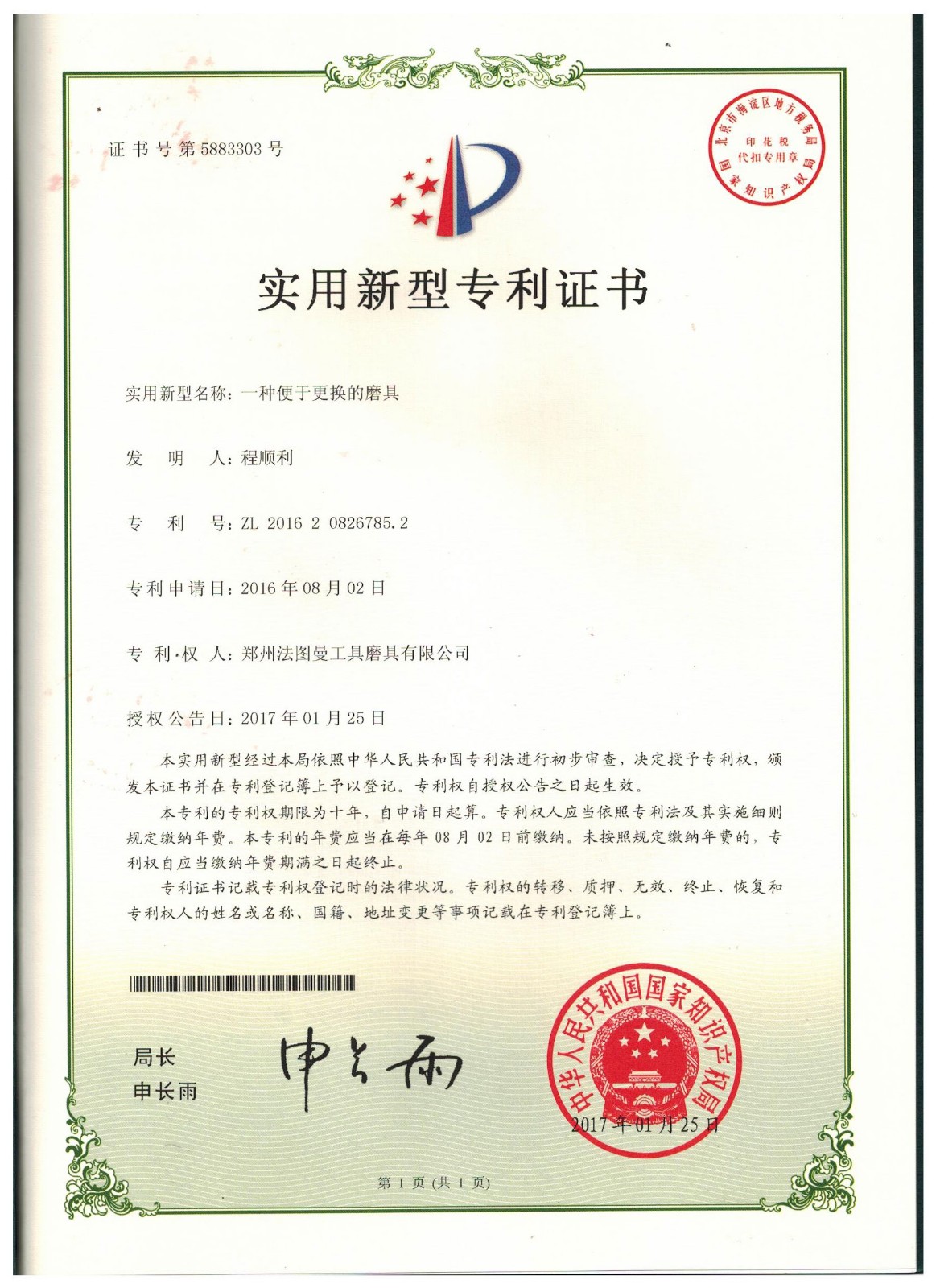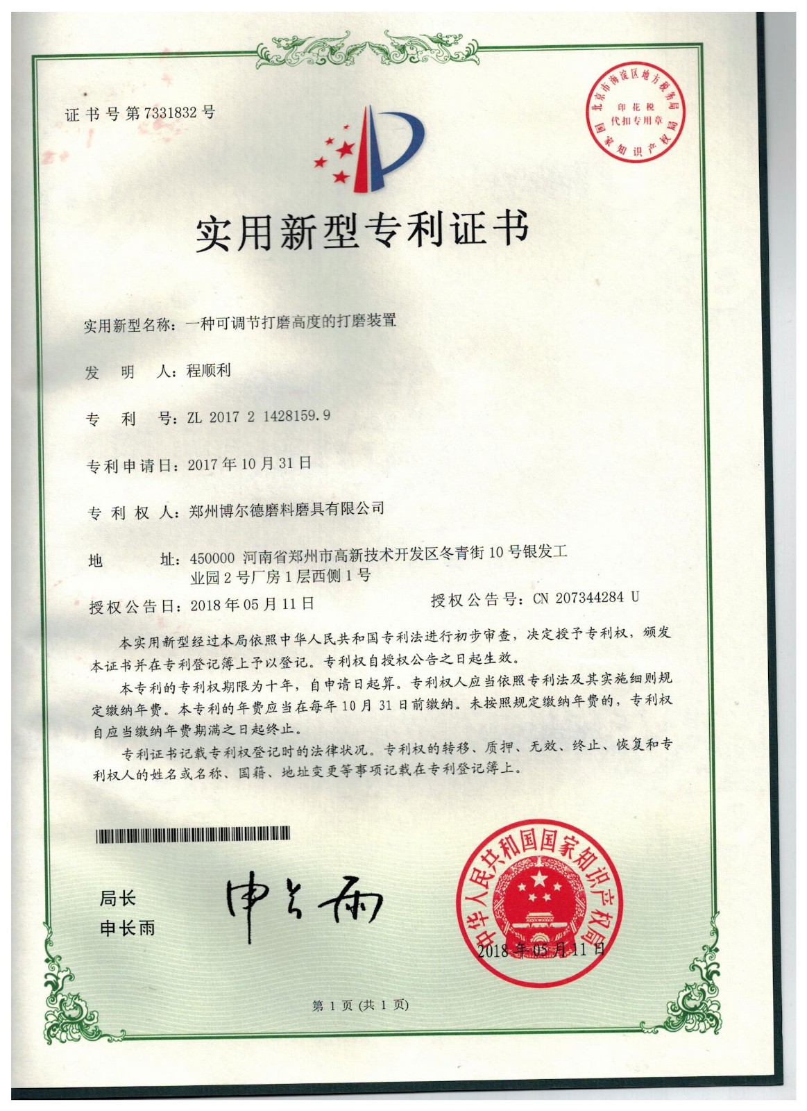 博爾德集團旗下專利證書展示